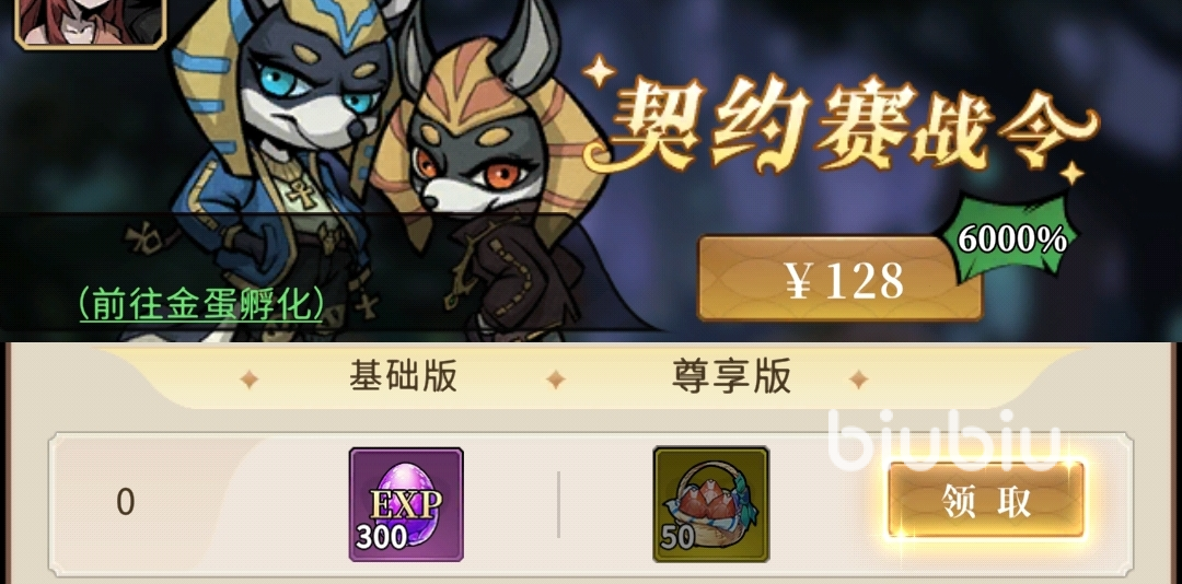 契约赛战令:128元,累积孵化金蛋获取积分,能拿到魔兽蛋、钻石等奖励。