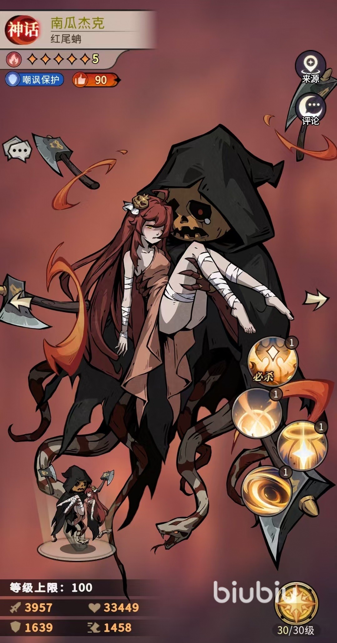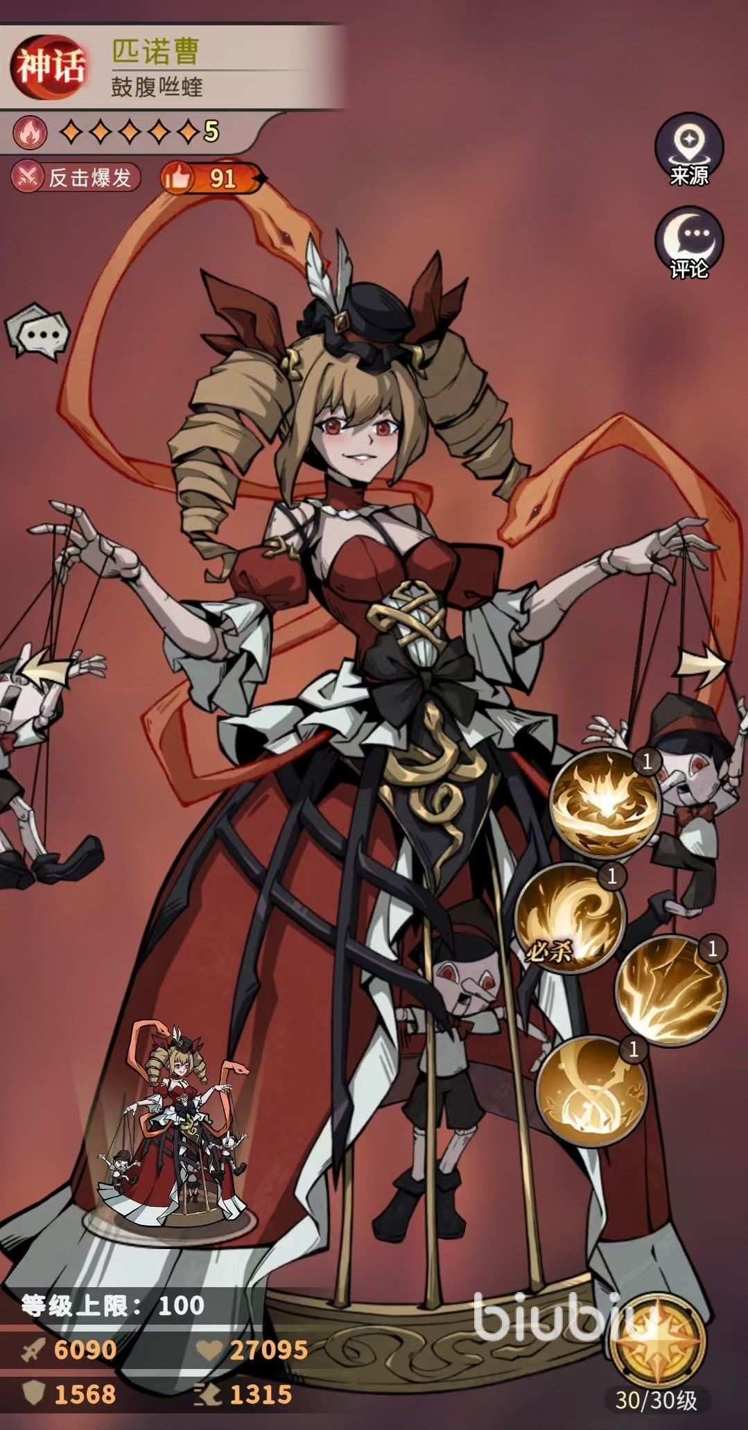 第三个被动增加的是自身的攻击,生命和暴击这三种属性。第四个被动在行动前可以提升自身最多30%的攻击,场上阵亡单位数量越多,额外附加的攻击也就越高,最多能够叠加5层。所以乌鸦王子这个角色的主要作用,就是给对方的全体快速普遍的叠加上灼烧。这样不仅自身后面的输出会非常可观,也可以给其他的队友带来帮助。因为灼烧是一种非常特殊的状态,有很多联动机制,在阵容搭配方面也是以火系为主。小编选择的队友组合是匹诺曹、乌鸦王子、红帽外婆、玫瑰公主、南瓜杰克和法海。