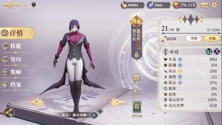 (1)德古拉《德古拉》:T0级别,目前游戏最强单体群攻,再往后单体角色就是精装和平装了。
