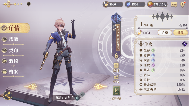 2、罗宾:优先属性为暴击几率>攻击力>速度值。天子的受命。
