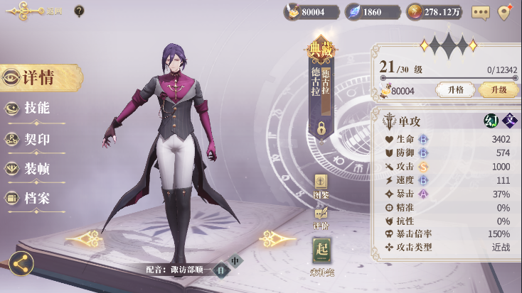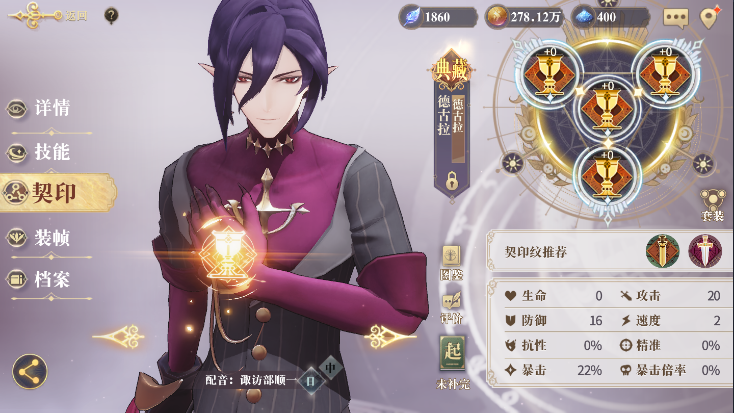 3、德古拉:优先属性:暴击伤害>暴击几率>攻击力。所罗门的智慧。