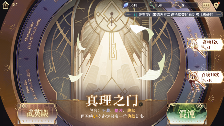 1、真理之门:典藏卡牌的几率为1.5%,在抽取88后必定得到一个SSR典藏卡,不过是随机出的。