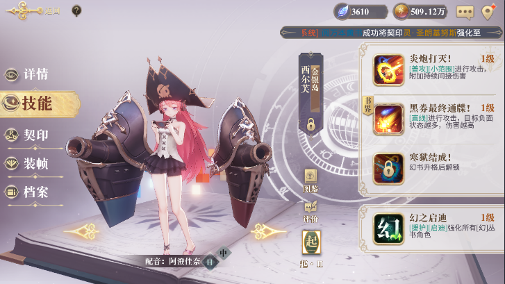 5、技能学习优先度:寒狱结成!=寒狱结成!>炎炮打灭!>幻之启迪,寒狱结成和寒狱结成同样重要,如果走debuff队伍,那么三技能被动是肯定要学习满级的。而debuff队伍的核心输出又是金银岛希尔芙,因此二技能也要学习满级。一技能和援护技能价值不算太大,因此不用着急学习。