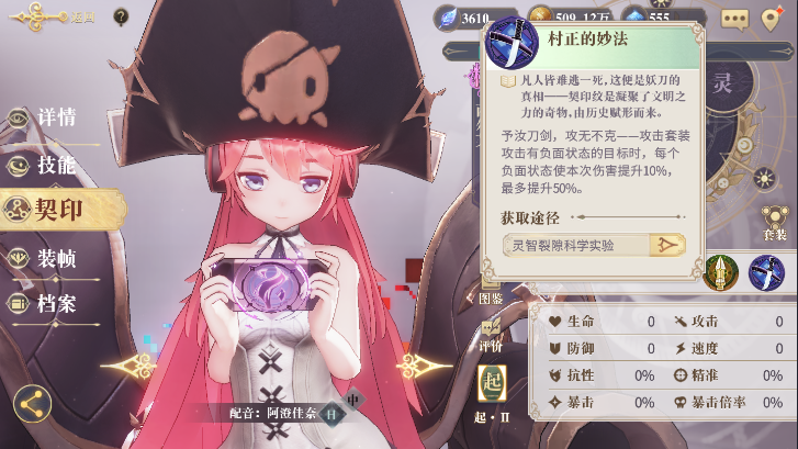 3、评价刻印:契印推荐村正的妙法,攻击有负面状态的目标时,每个负面状态使本次伤害提升10%,最多提升50%。