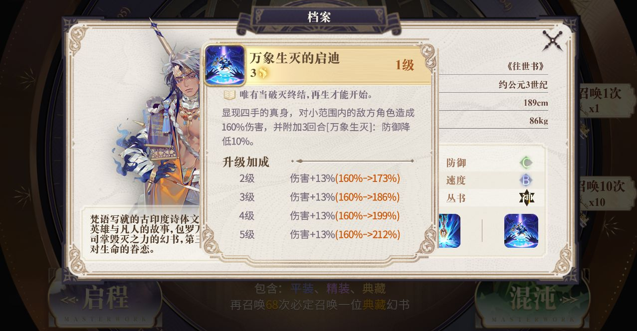 2、万象生灭的启迪:属于主动技能,伊舍那的主要输出技能,有着非常不错的伤害加成,并且还能降低敌人的防御力。