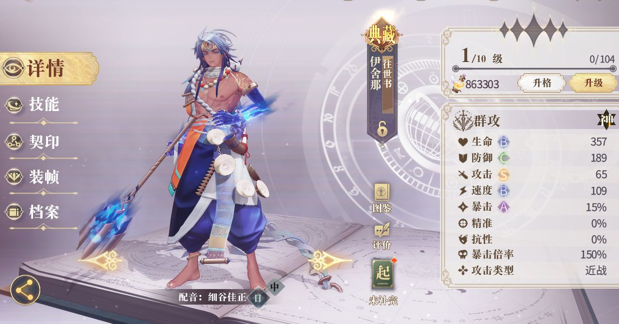 1、角色信息:伊舍那《往世书》是群攻(小范围)系角色,初始品质为典藏SSR卡。