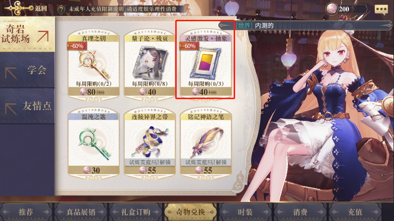 2、开荒阶段小编建议大家三次体力都买满,传世玉叶最好不要用来抽卡,只要把前二十次的必得典藏抽了就够了,因为体力的收益是最大的。