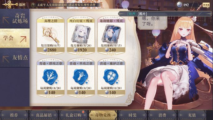 1、学会成员养成守门人提交的材料积分将转化为学分,获得学分后可以在商城中兑换奖励,每周提交材料可以获得的学分有上限,学分达到上限后不可再提交材料。其中最为重要的道具是“纯白幻页残页”,这个是用来给SSR典藏升级的必备道具。