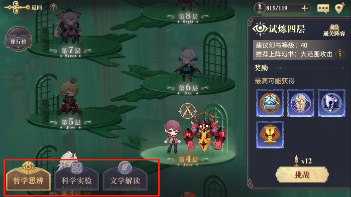 2、灵智裂隙:灵智裂隙是主要获取契印的地方,这个地方分为了三个副本分别是哲学思辨、科学实验、文学解读,不同的副本对应着不同的契印。