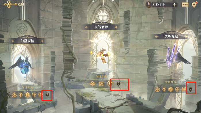 (1)查看副本开放时间:三个副本都是一样的,在虚空书界界面可以看到三个副本旁边有三个小问号,点击之后即可查看当前副本的开放时间,不在时间内是无法进行切换的。