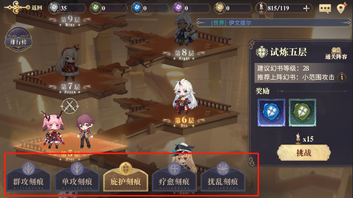 3、试炼荒庭:试炼荒庭副本和幻星辰墟一样,副本按照职业进行了分配,需要玩家自己进行切换。