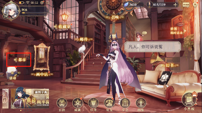 2、如何进入:首先进入到游戏的主页面位置,点击左下角位置的“都市”按钮。滑动屏幕就能找到“虚空书界”了,进入之后即可看到以上三个副本。