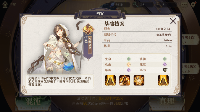3、伊芙:优先属性:暴击几率>攻击力>速度值。契印推荐维京传奇。