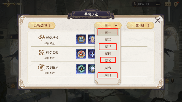 1、灵智裂隙分为哲学思辨、科学实验、文学解读。这三种副本对应着不同的契印,殷商的龙骨在哲学思辨副本里面,且在周一、周三、周五、周日才能刷的到殷商的龙骨,其实时间是不开放的。