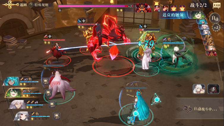 2、所有的副本都是两个战斗关卡,大家在第一关要多积攒一点能量留在第二关用。第二关是BOSS战,游戏中的BOSS是免疫控制效果的,因此这一类阵容就不要使用了。