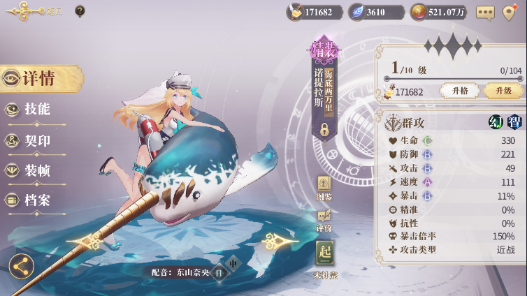 4、诺提拉斯:优先属性:生命值>速度值>防御值。契印推荐天子的受命。