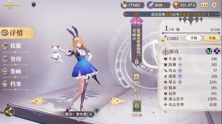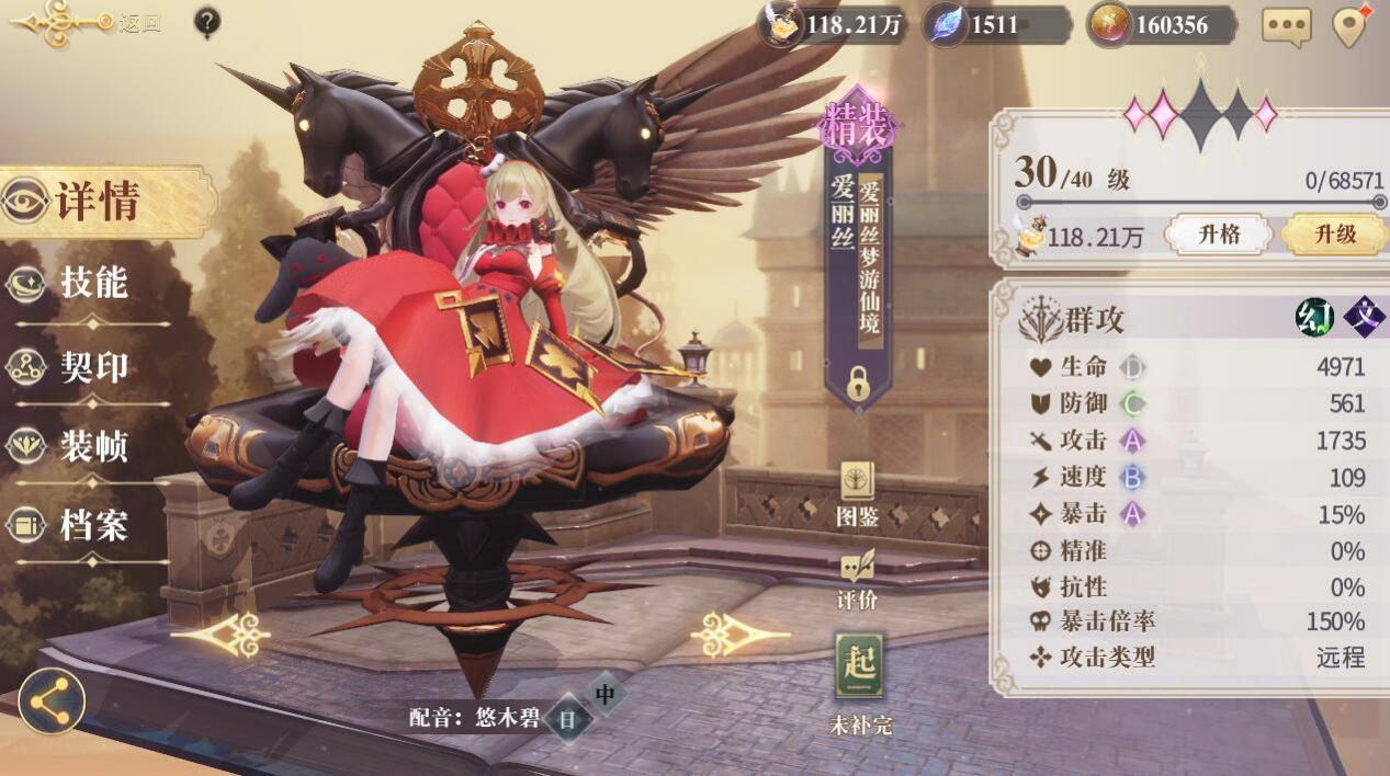 1、爱丽丝:优先属性为暴击几率>攻击力>速度值。契印推荐阿育王的觉悟。