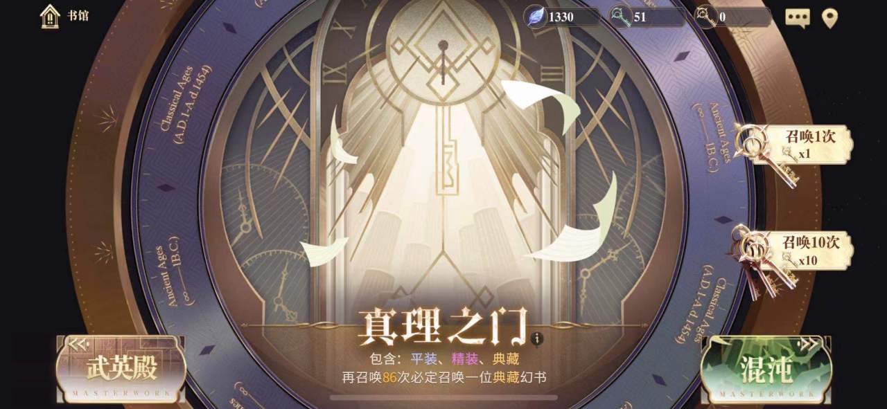 游戏中获取典藏角色的方法最最直接的就是真理之门抽卡,有一定的保底,如果是刚进入的玩家10连必定会出一个典藏,运气好的话上来直接可以抽到婴宁,那就非常幸运了,没抽到也没关系,我们可以在以后继续收集真理钥匙来抽卡组,一般情况下出典藏的几率只有1.5%保底召唤88次必出,可以看出典藏是相当稀有了。