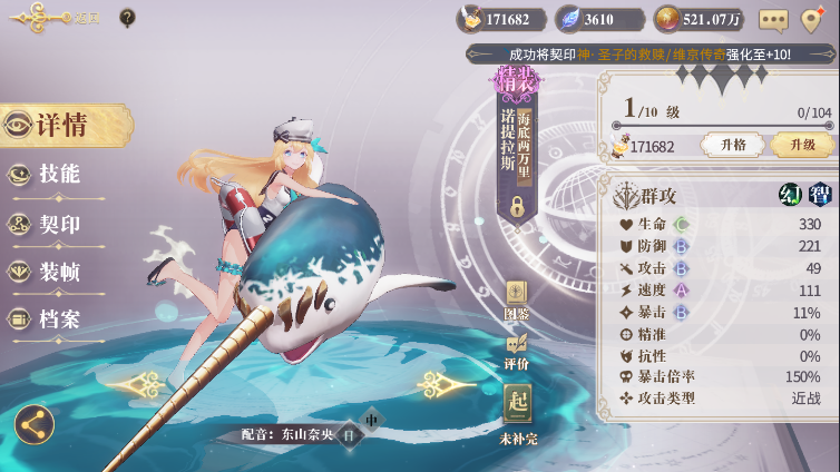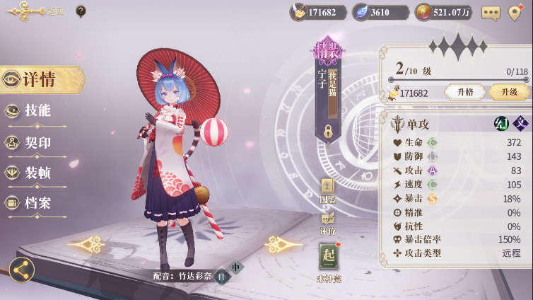 2、技能加点:宁子技能需要一技能三技能、诺提拉斯技能需要二技能三技能、罗宾技能无要求、歌剧技能需要二技能、蓦然技能无要求。