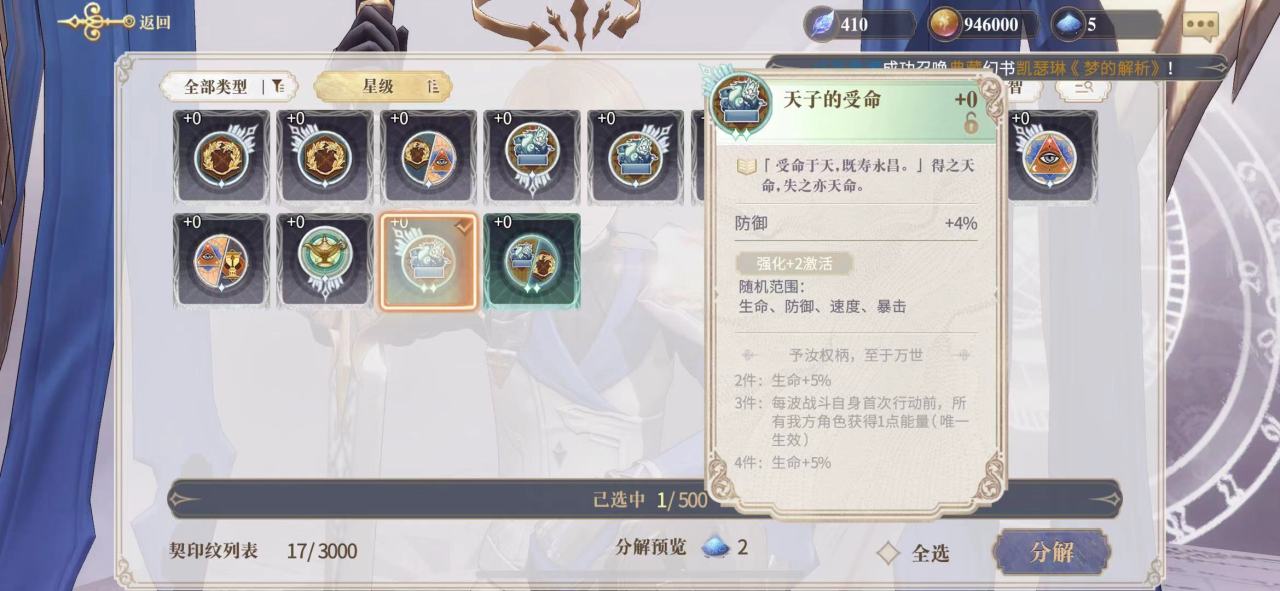 想顺利通关五层还要带正确的契印,罗兰需要带真龙和查尔曼,伊芙需要带上查尔曼,罗宾则需要带上天子契印,珍珑的契印可以带上死海或者是战争理论,协战方面最优先携带的是控制,福尔摩斯夏洛蒂是最好的选择,可以让敌人两回合不行动,次要携带的是治疗协战,可以增加阵容的可持续能力。