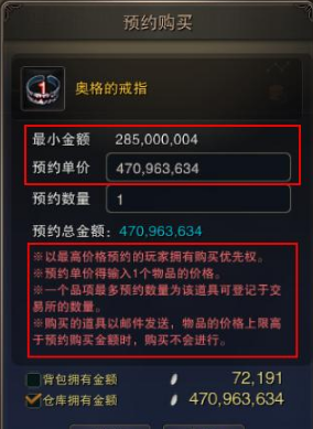 假如拍卖市场某种货品特别罕见,但你又特别要想,那么可以通过预约系统进行购买,以高过市场价的价钱去预约购买相对应的物资。预约一确定之后系统会帮你购买,当然你还需要确保金融机构里面的余额足够。