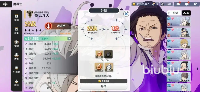 角色养成方面,国服版本针对以往的玩法进行了改进。角色达到指定等级后,消耗日常副本中产出的升阶石就能突破稀有度和等级上限,不再需要角色碎片或万能碎片,这极大地缓解了培养的负担。