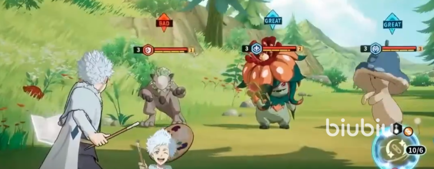 使用时有50%的概率解除敌人身上带有的两个增益,他的必杀技“束缚之泉”会用颜料将敌方给包裹住,对全体敌人造成一定输出,并赋予他们无力化效果2回合,有40%概率会赋予眩晕,无力化能让目标承受的伤害两增加,眩晕会让中招者在下回合无法行动。