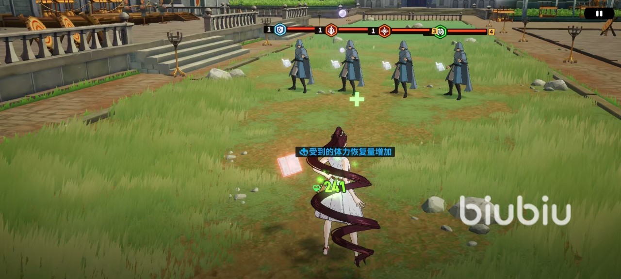 卡荷诺的第1个技能虽然有攻击性质,但核心却是治疗,它会选定我方生命值较低的单位附加持续治疗效果,每回合都可以按照目标最大体力值的百分比来进行恢复,这个技能有效加强了队伍持久作战能力。二技能给全体队员施加持续两回合的护盾,护盾是按照卡荷诺自身的比例最大值百分比来计算。在有了护盾之后,不仅可以降低团队整体所受到的伤害,还能额外提高全队的暴击率,持续两回合,综合辅助能力非常突出。