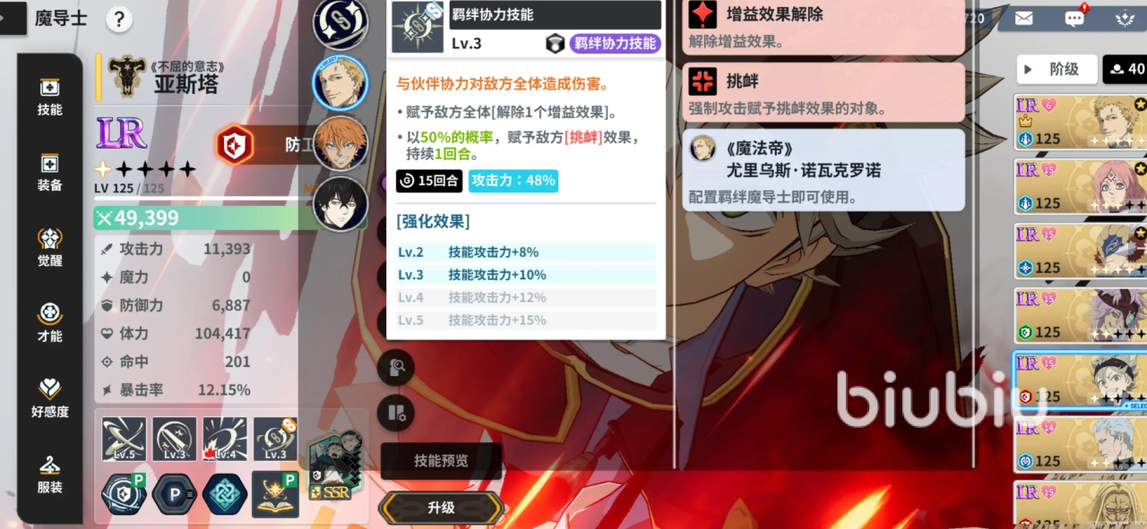 在技能方面,他的灭火光线能力突出,作为核心单体输出,会基于自身攻击和魔力值给敌人带来高额的输出伤害,此外能附加削弱的效果,当目标处于烧伤或是其他的负面状态时,可以让技能伤害提升30%。