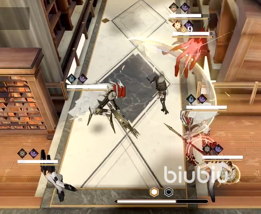 这段战斗还有另外一个教学,那便是角色的切换。咱们在游戏之中所遇到的敌人如果觉得当前的角色应对不是特别强势的话,那么咱们是可以切换成其他的角色的。同时如果需要打什么连携技的话,那么也可以利用好角色的特性来进行切换。咱们在击败敌人的时候会积攒我们的终结技槽,等到这个槽完全满了之后,咱们便可以直接释放终结技了。此技能是属于大招的性质,释放之后一般可以使用出很强的能力。