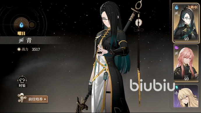 青在游戏中的定位属于SSR级,身着一套青黑色长裙,虽然戴着一副眼镜但一点儿也没有书呆子的感觉,反而更多的是一份高冷和凌厉的气质。青在平日里有着繁重的工作压力,一旦遇到了棘手问题就会变得更加冷冽。