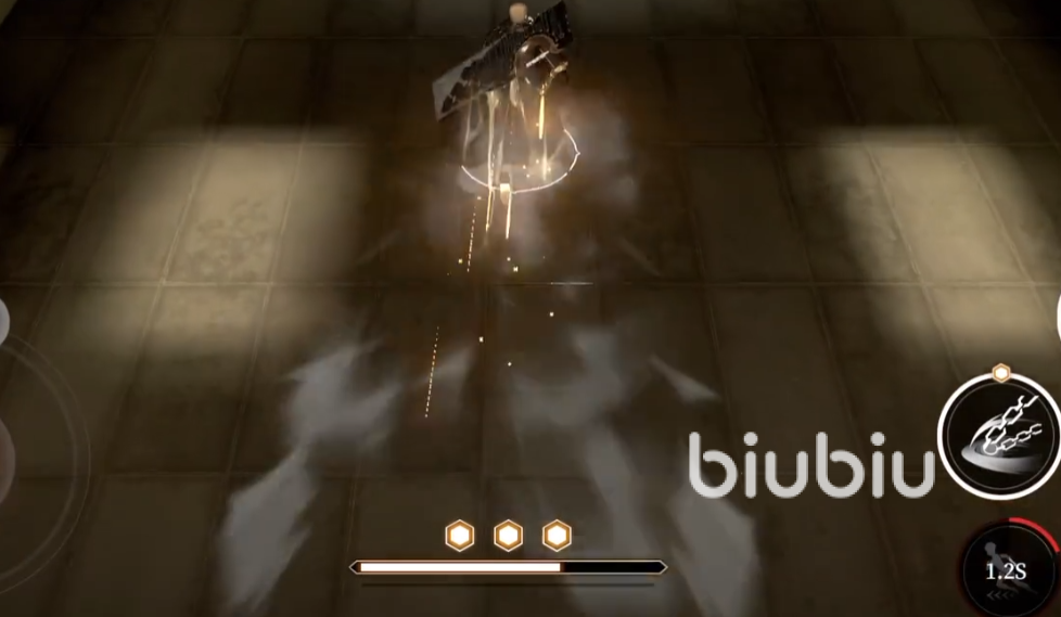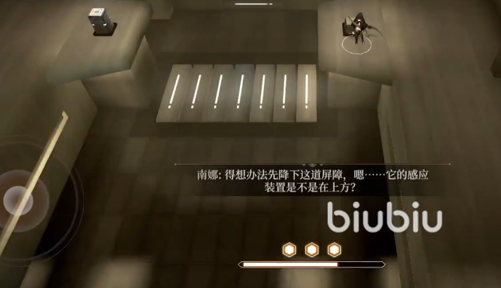 这一关的主要难点是在第二次怪物遭遇战中,当大家通过中央计算机上方的机关进入第二个房间以后,就会在该房间里遇到三个怪物,其中最大的那个就是boss,该boss的攻击力非常强,并且还会蓄力技,如果完整的吃上他两次蓄力技哪怕不死血条也会被直接清空,所以在打这部分的时候,要么选择切换成沙玛什直接开大硬碰硬,要么就在boss身上闪光发出的瞬间使用瞬步离开他的攻击范围,利用他的出招间隙攻击他是最好的选择。
