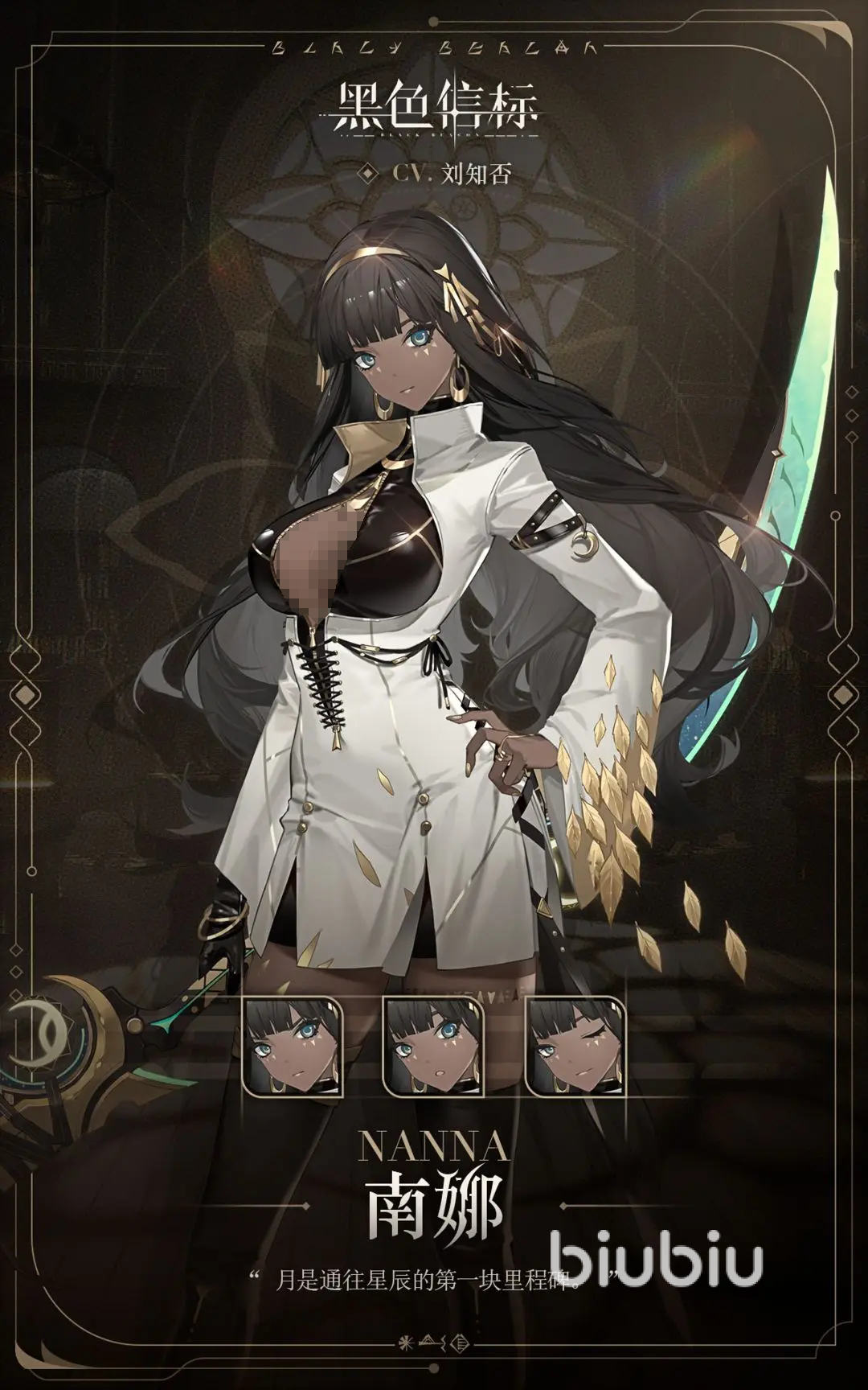 南娜在外形方面就非常的与众不同,是很少见的黑皮美少女,配上金色的挂饰的点缀,非常的高级有质感,在实力方面更是不容忽视。”月辉”作为出场技能,切换她上场时会挥砍身边的敌人,共计造成98%普攻伤害。