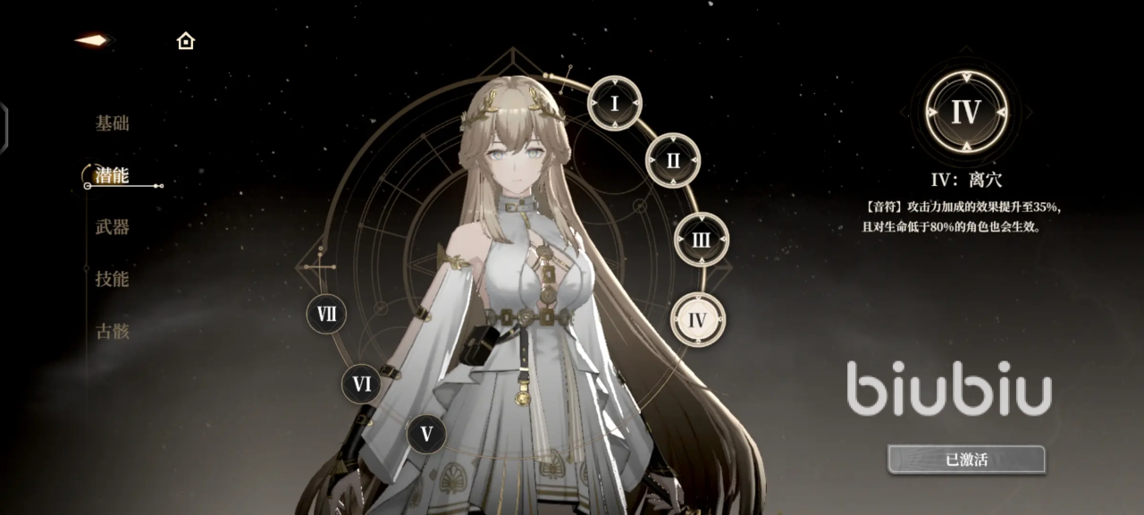 这是支援型的均衡职业,虽然在输出伤害方面并不是非常突出,但是她是非常适合持续在战场作战的。她的出场攻击会刺击周围的对手,对方遭受48%普攻伤害;在完美闪避后点击普攻能追击对手,敌方承受68%损伤。”四音琴剑”的普攻有四段,累积对敌方打出高达136.4%普攻伤害,第四段命中对手时会获得1枚”弦音”,在调律状态下,普攻直接从第三段进行并且长按能重击。