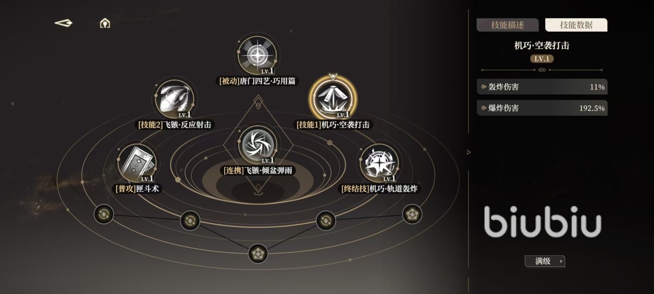 第1个技能技巧空袭打击,打开自己的武器匣,将无人机释放出来,在指定的区域进行持续轰炸,三秒钟后无人机将会坠落,造成一次大发为爆炸伤害。在轰炸期间,每次命中敌人,都可以积累5点火力值,在无人机坠落爆炸命中敌人时积累15点火力值。轰炸期间和无人机坠落爆炸会对命中人附加标记,可手动控制无人机坠落命中带有标记的敌人,无人机爆炸伤害翻倍。