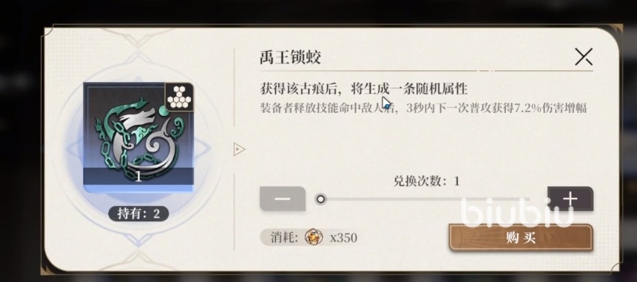 在解锁了相应的词条后想要再次刷新词条的话,就要点击词条属性后利用【禹王蛟锁】这个道具来刷新了,想要拥有足够的刷新词条道具可以在商店中购买,在购买时如果货币不够的话同样可以通过刷探索副本或者是氪金来获得。