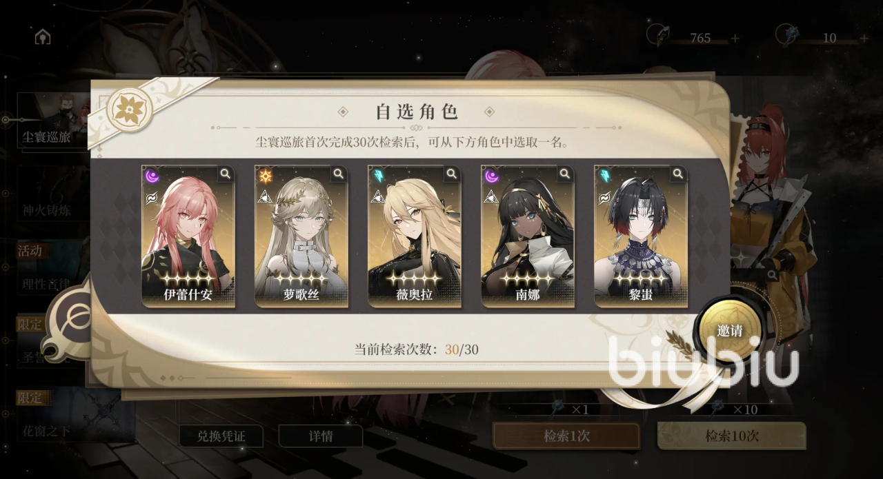2、选择建议:在穷举模式是非常强力的角色,半血自回,因此算是多模式都非常的强力。而且暂是是无up池的,因此推荐选择这个角色作为自选。