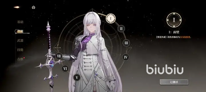 这个角色拥有一头顺畅的白色秀发,外表看起来非常高冷,火元素阵营的输出角色。普攻有3段,第三段打出后,她会进入到统御状态,被动与普攻的状态相关,处于这种状态时,可以产生额外的派生技能,在进入状态时立刻使用派生技,就能获取额外5秒的霸体效果,统御状态时,每次使用技能,都能获取1层”焚花”,外加1层”君主之势”,君主之势每每一层都能提高分支技造成的伤害,每层可增强3.85%的伤害,最多叠加3层,每一次获取时,都能延续该招式的时间,焚花的层数累积越多,就能让大招的伤害提升越多。