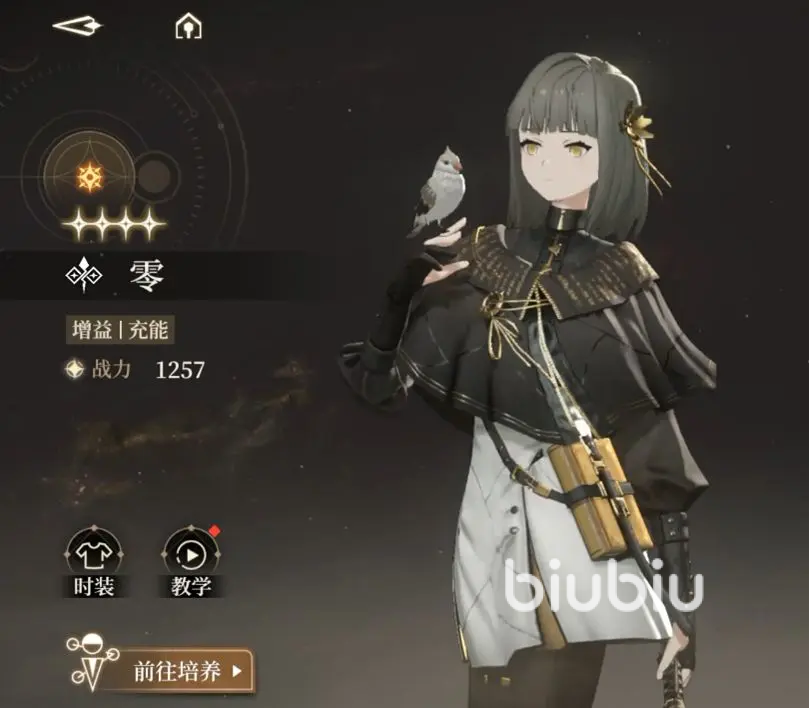零虽然是一名四星的辅助角色,但是她的强度是毋庸置疑的,作为T0角色,她能带来非常好的增益以及蓄力效果。普攻分四段进行,共计能打出159.5%伤害,长按普攻可触发重击,重击伤害为33%。闪避技“瞬光”,成功闪避后,可点按普攻对敌方进行追击,同时让敌方单位受到126%伤害。出场技”浮光”,上场后能对最近的敌方目标继续拧攻击,敌人受到22%的普攻伤害。被动“司书权限”,被动触发后,普攻能得到强化,普攻效果变为“辉刃”,此时她会和安祖协同攻击敌人,伤害得到进一步提高,使用强化普攻时需要消耗“翎光”,“翎光”耗尽后强化状态就会消失。