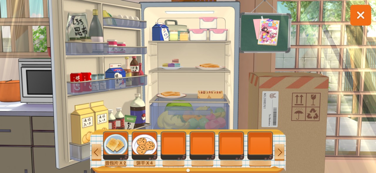 首先胡桃吃东西的方法只有两种:第一种是将食物放进冰箱里面,冰箱里面有四个格子,可以放不同的食物(尽量放胡桃喜欢吃的,可以增加与胡桃的好感度),然后等着胡桃到饭点了,她就会自己打开冰箱打到旁边的凳子上进食。另一种是胡桃的旅行包,每次出门前一天晚上帮胡桃放一点食物,这样她在外面玩一天也不会饿肚子了。