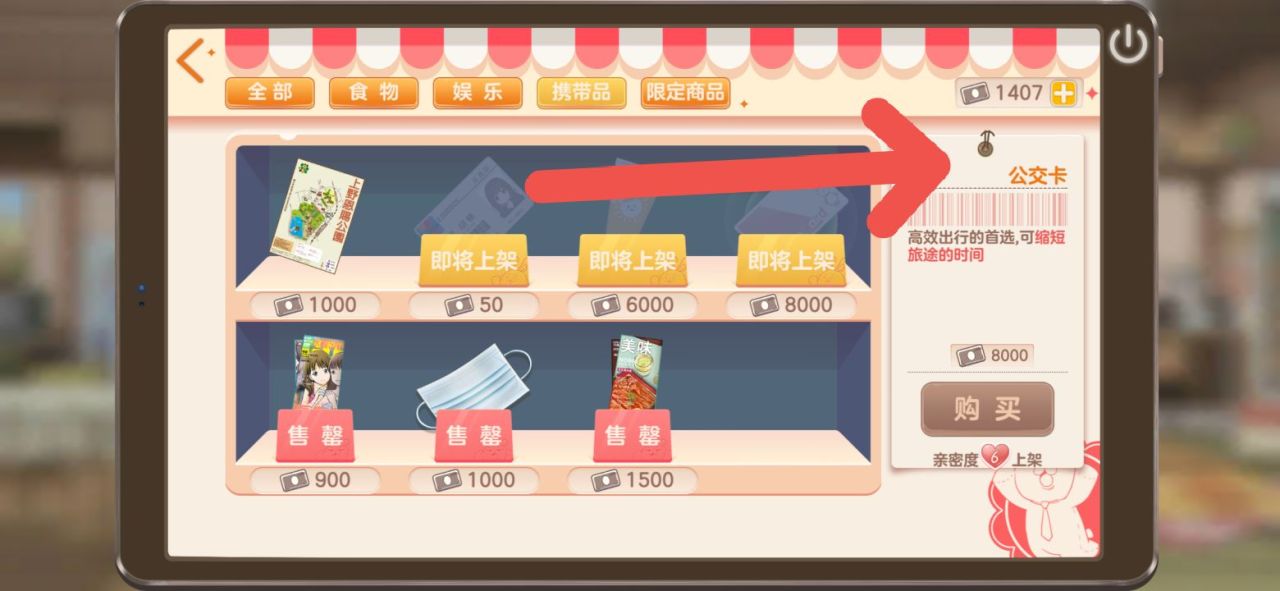其次比较重要的就是食物了,不能带低阶类似于面包饼干的食物了,应该慷慨一点买给胡桃几个洋果子吃,这样还可以增加玩家与胡桃的亲密度;然后比较重要的就是随身听,大概要花费9000零钱左右,比照相机便宜1000零钱,因为路途十分遥远,胡桃的压力值会随着坐车的时间增加。