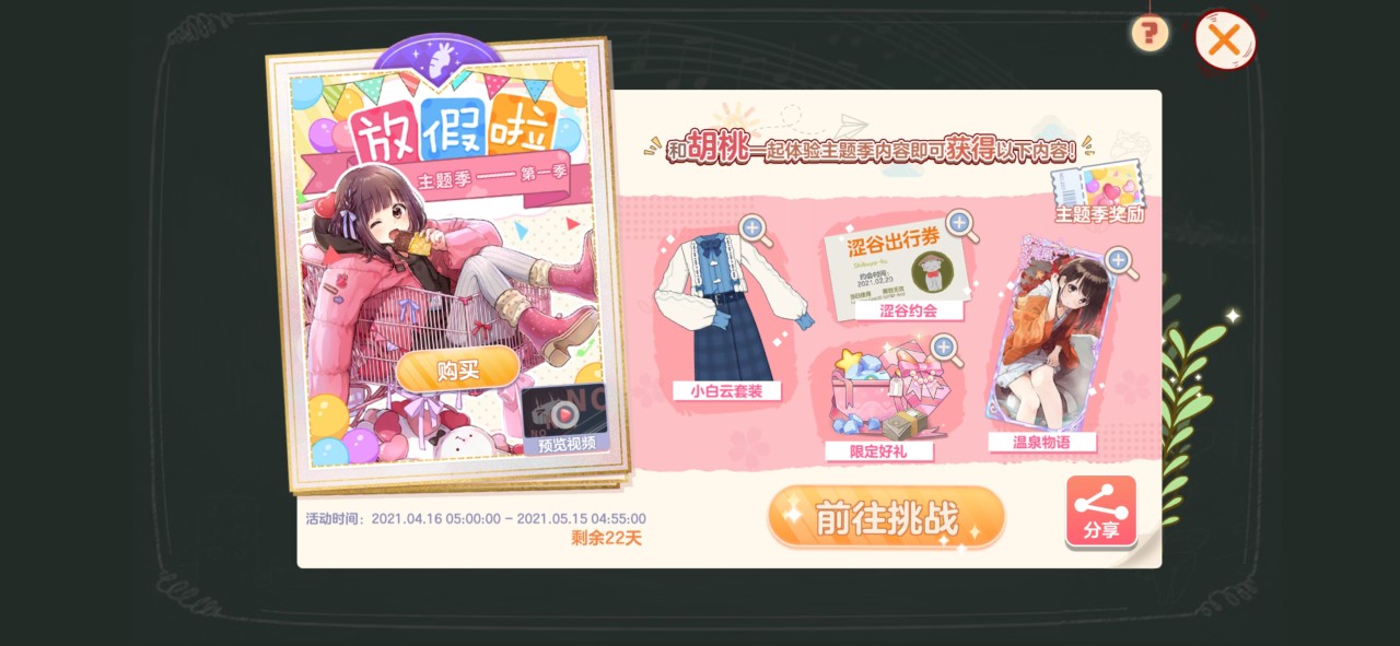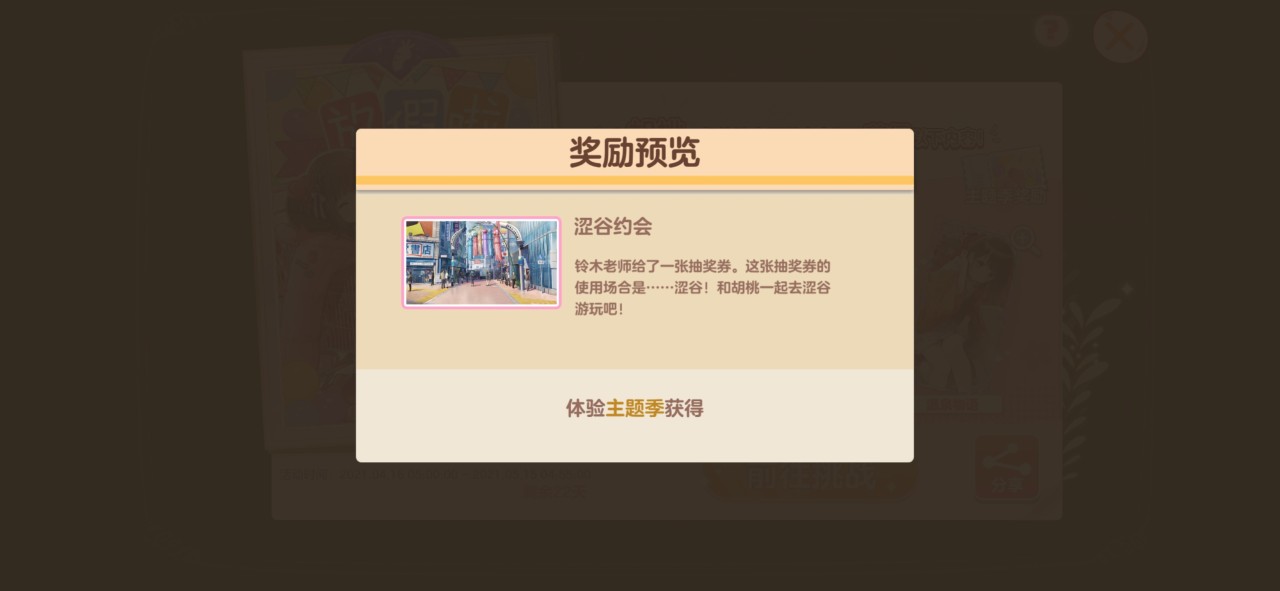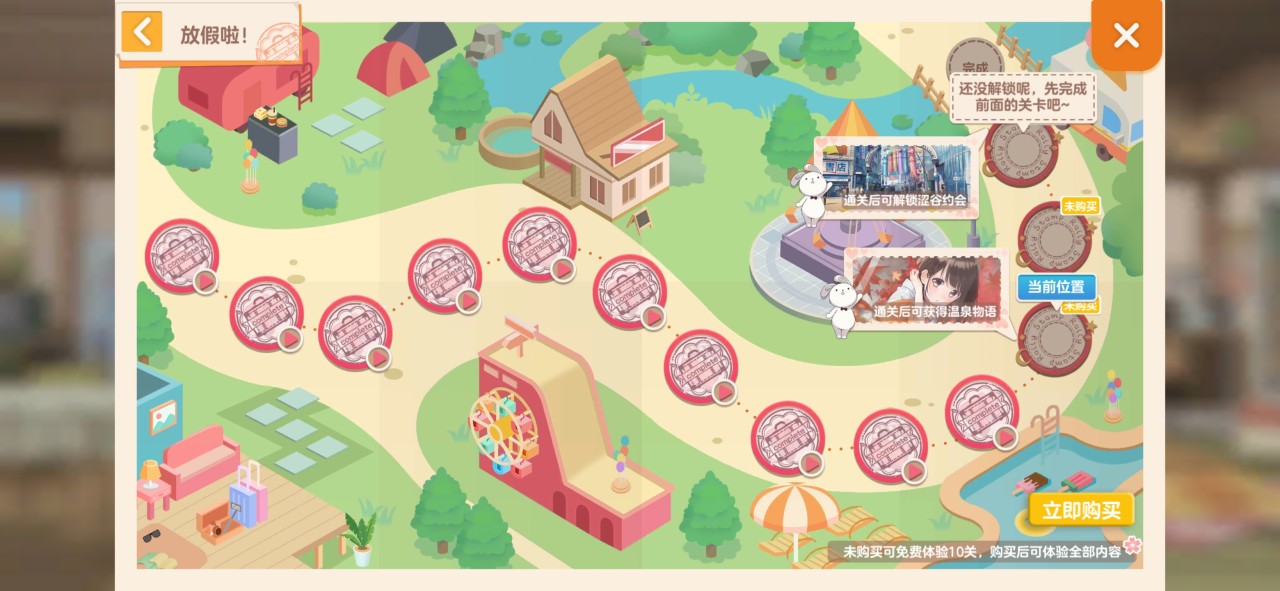 去涩谷一共有两个办法:第一种是点开门口旁边的假期主题,前九关可以免费体验,第十关需要玩家充值25元进行购买,这样就可以直接解锁涩谷约会主题;
