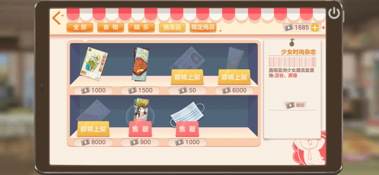 另一种方法是玩家点击平板电脑,接下来选择便利店,购买少女时尚杂志,然后需要点击门口旁边的行李包,将少女时尚杂志放在包包左侧,并且佩戴相应的食物,这样第二天醒来,胡桃出门的时候就会自己去涩谷游玩了。