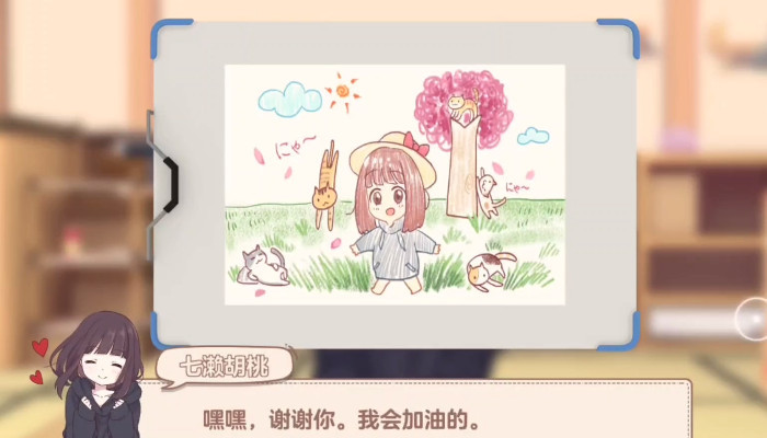 首先,小伙伴们需要在点击登录游戏后,连续点击小胡桃头上的对话框,进行每日互动,增加每日必须不能错过的好感度,之后需要滑动主屏幕将画面切换至左侧,然后点击下方木头桌子上最右侧的书本,打开后会看到里面有羁绊之语,表情包,旅行,日记还有收集册。