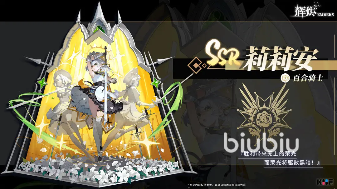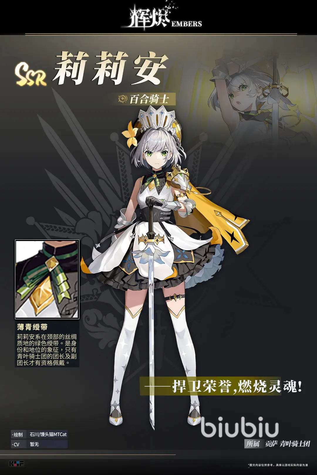 2技能“盛放百合”,她的身影消失,在前方划出1个百合图案剑阵,消失时间段,该角色不会受到伤害。3技能“荆棘突刺”,拿剑朝着前方发动突刺攻击,对手受到一定损伤。大招施放后,分裂出分身,地面制造出发光百合图案,分身在瞬间对敌方发动多次攻击,分身消失后,她快速向前冲刺距离,使用火种让敌方单位受到巨额伤害,刃心不同阶段可对大招带来不同增幅。
