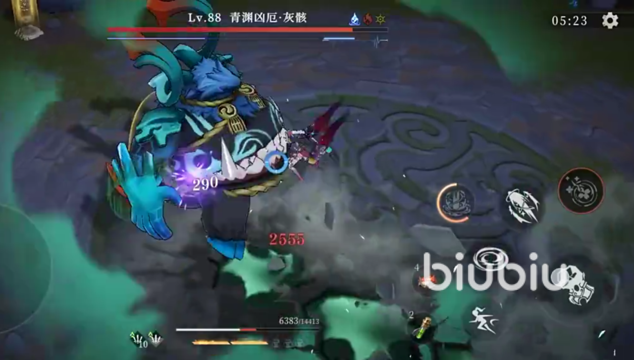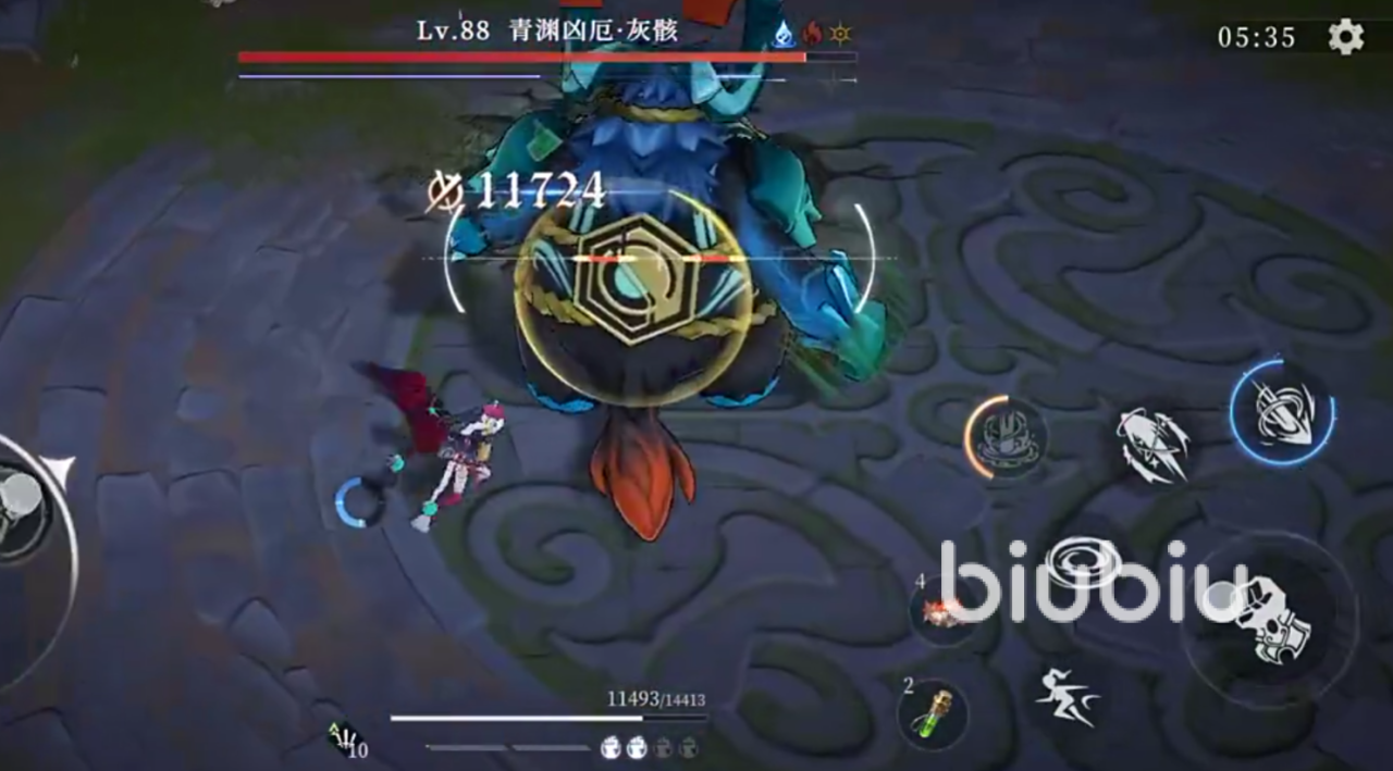 他的“恶兽回旋”会向着前方冲刺,造成一定输出,成功攻击到敌人的时候会空翻,并在之后甩出爪风来撕裂前方敌人,形成大量的输出,这招的第2段成功命中敌人的破绽,会根据破绽的级别来得到不同量的怒气。