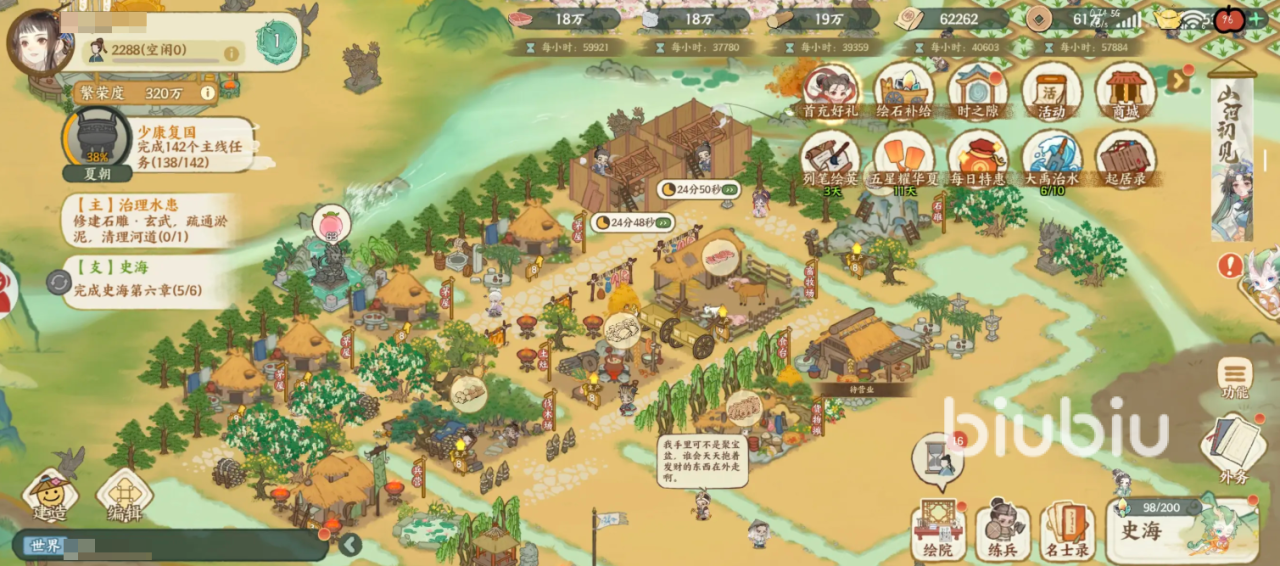 再来聊聊它的玩法与特色。《华夏绘世录》定位国风模拟经营与历史养成手游。作为“绘世者”,玩家手握“指点江山笔”,重塑华夏文明,建造朝代、经营城池、发展科技、招募名士。需要规划资源、升级建筑、派驻名士、政策科技研究等。招募许多历史名人,将他们配置在不同岗位或随玩家出游。