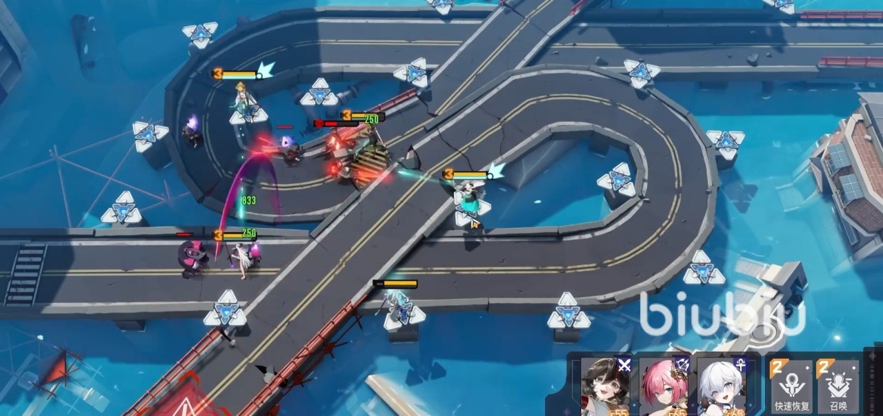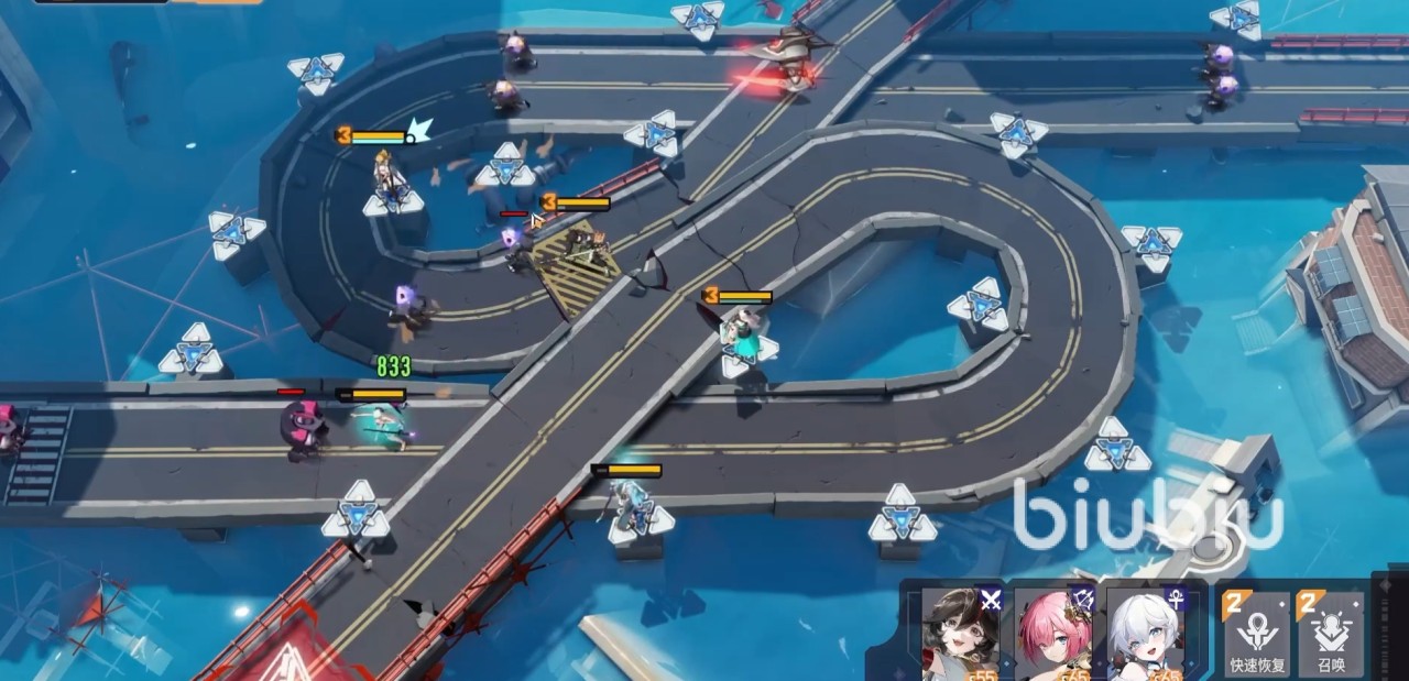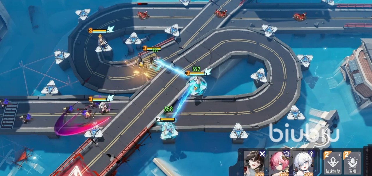 首先,大家要了解一下该关卡地图的特点,4-11关是一个环形赛道,存在两个出口与两个入口,每个入口都会有敌人出现,为此玩家要记得把舍友放置在这些出、入口中进行防护,在地图中间的那个机械装置是比较厉害的,它可以给敌方造成极大的伤害值,可以不断发射导弹,但是玩家得要先去触发开关才可以,所以还是比较麻烦滴~大家要合理安排自己的舍友站在这些机关附近,从而帮助他们能够更好地进行攻击、防御。