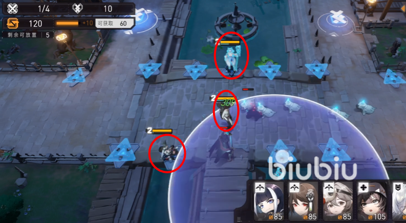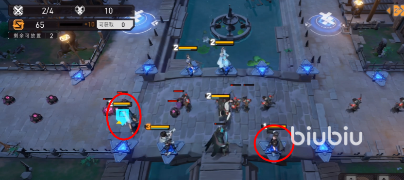 等可以摆放第四个单位的时候,再随便拉一个狙击上去增强火力,比如说恒。打完第一波敌人会留下一个血量比较多的敌人和盾在拉扯,然后第二波的敌人就来了,这时候左路的怪物会有点多,而且打己方的远程会比较伤,所以再拉个盾去守一下。