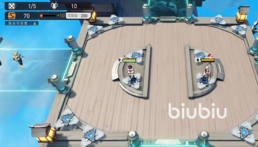 在本关里可以上阵的角色有6名,需要好好利用暗术的高伤害和群攻能力来对待敌人。进入地图后,在左下方使用进击,等敌人多了后可以在放个防护。之后高台放置暗术即可过关。之后几关难度都不是很高。一直到1-9,作为第一章的最后一个关卡,还是有一些难对付的。这个关卡可上阵人员变为了7人,上阵的狙手需要有一些练度。一般需要两个狙手,两个暗术和两个防护以及一个治疗。中间四个角全部放上输出,之后的防御重点是下方,只要保证下方的防御战线不崩坏就不会有特别大的问题。